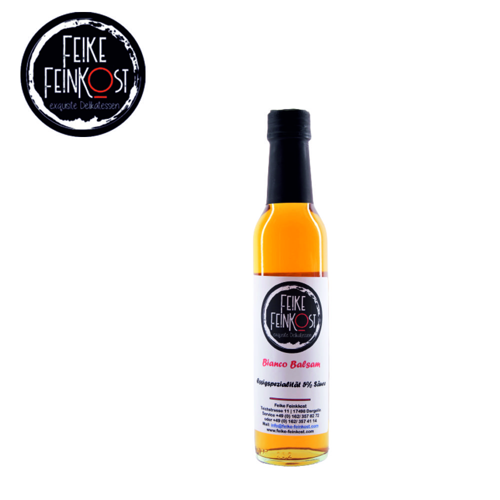 Ein ausgewogener und milder Balsamico auf der Basis von Weißweinessig. Vielseitig in der Verwendung in der feinen Küche. Egal ob zum Dressing oder  zum Verfeinern von Saucen oder Eintöpfen.